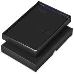 Why not add a matching pen to your diary gift this year? This set includes the Enterprise A5 diary in Black and a Zeta Ball Pen in a choice of colours, packaged together in a matte black, rigid 2-piece gift box.