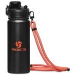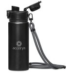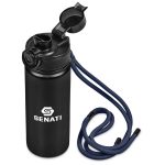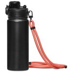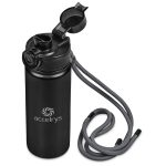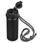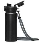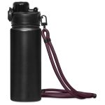 The innovative swig or sip lid design of this water bottle gives you two drinking options: hold it upright to sip through the built-in straw, or tilt back to swig through the drinking port opening. The lid also has a clip-lock mechanism to keep it watertight when not in use, but easy to pop open when you need to hydrate. Unscrewing the lid from the base reveals a wide mouth, which makes it easy to load ice or fruit into your water. The adjustable, clip-on crossbody strap enables you to carry your bottle hands-free.