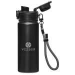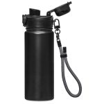 The innovative swig or sip lid design of this water bottle gives you two drinking options: hold it upright to sip through the built-in straw, or tilt back to swig through the drinking port opening. The lid also has a clip-lock mechanism to keep it watertight when not in use, but easy to pop open when you need to hydrate. Unscrewing the lid from the base reveals a wide mouth, which makes it easy to load ice or fruit into your water. The adjustable, clip-on wrist strap helps to free up the rest of your hand to carry other things like your phone or keys, when you’re on the go.