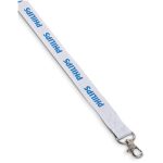This polyester lanyard has a velcro safety closure so that it can break away if caught in something. It’s fitted with a snap hook clip.