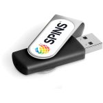 Classic flash drive with a soft-touch, lacquered base. The metal swivel is designed for vibrant, full-colour dome sticker branding which fits snugly into the recess. It has 32GB of memory, with a USB 2.0 interface. Presented in a transparent case.