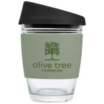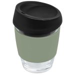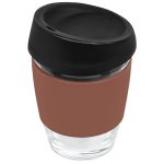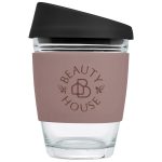 Made from strong borosilicate glass, this is a reusable alternative to single-use coffee cups. The silicone band will insulate your hand from the hot beverage inside the cup. The black silicone lid has a comfortable feel to the lips and a flow design that makes sipping your favourite hot beverage on the go an easy and pleasurable experience.