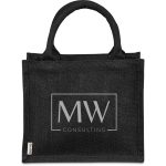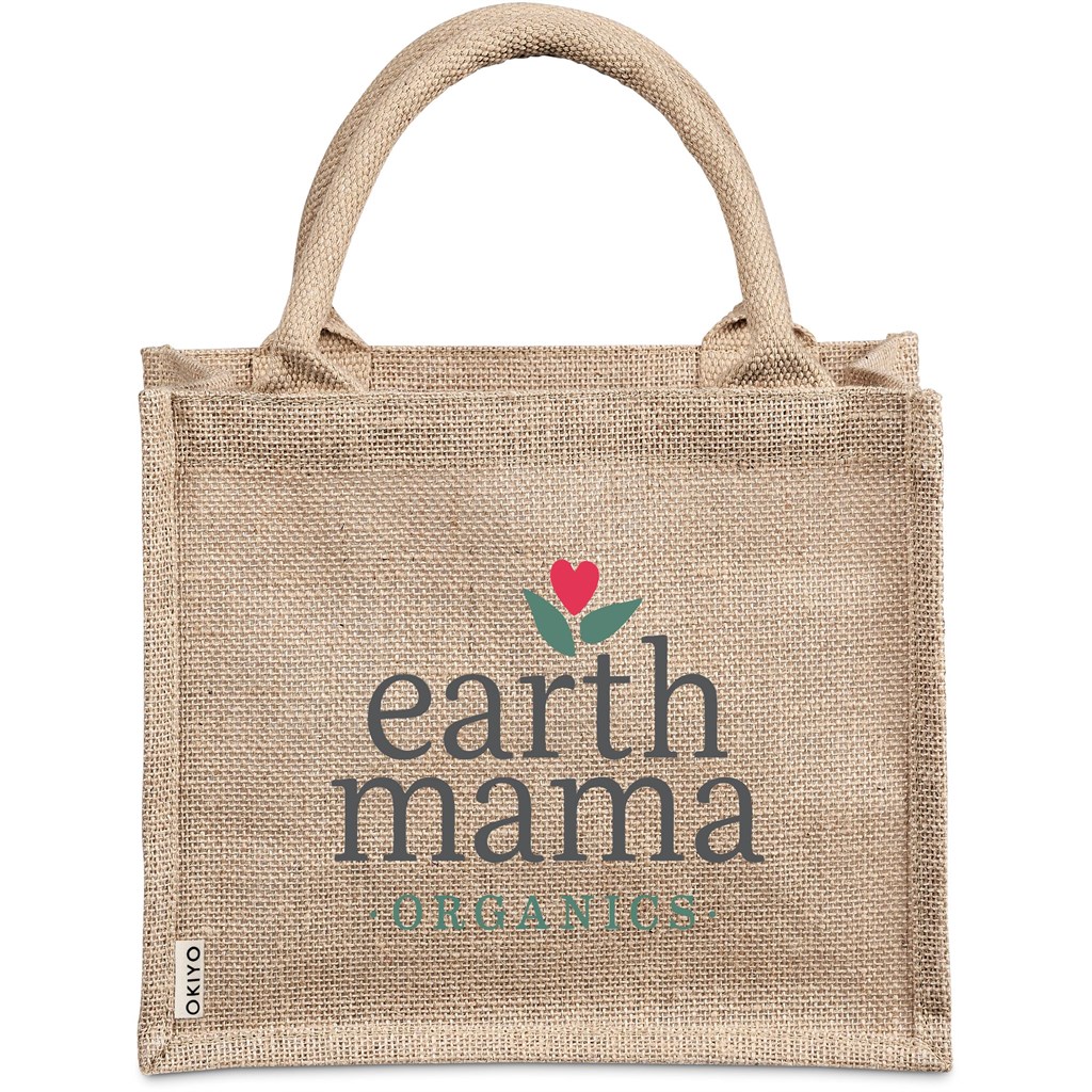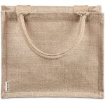 A reusable alternative to disposable gift bags, made from natural jute. Featuring an open main compartment, and cotton rope handles.