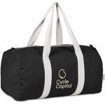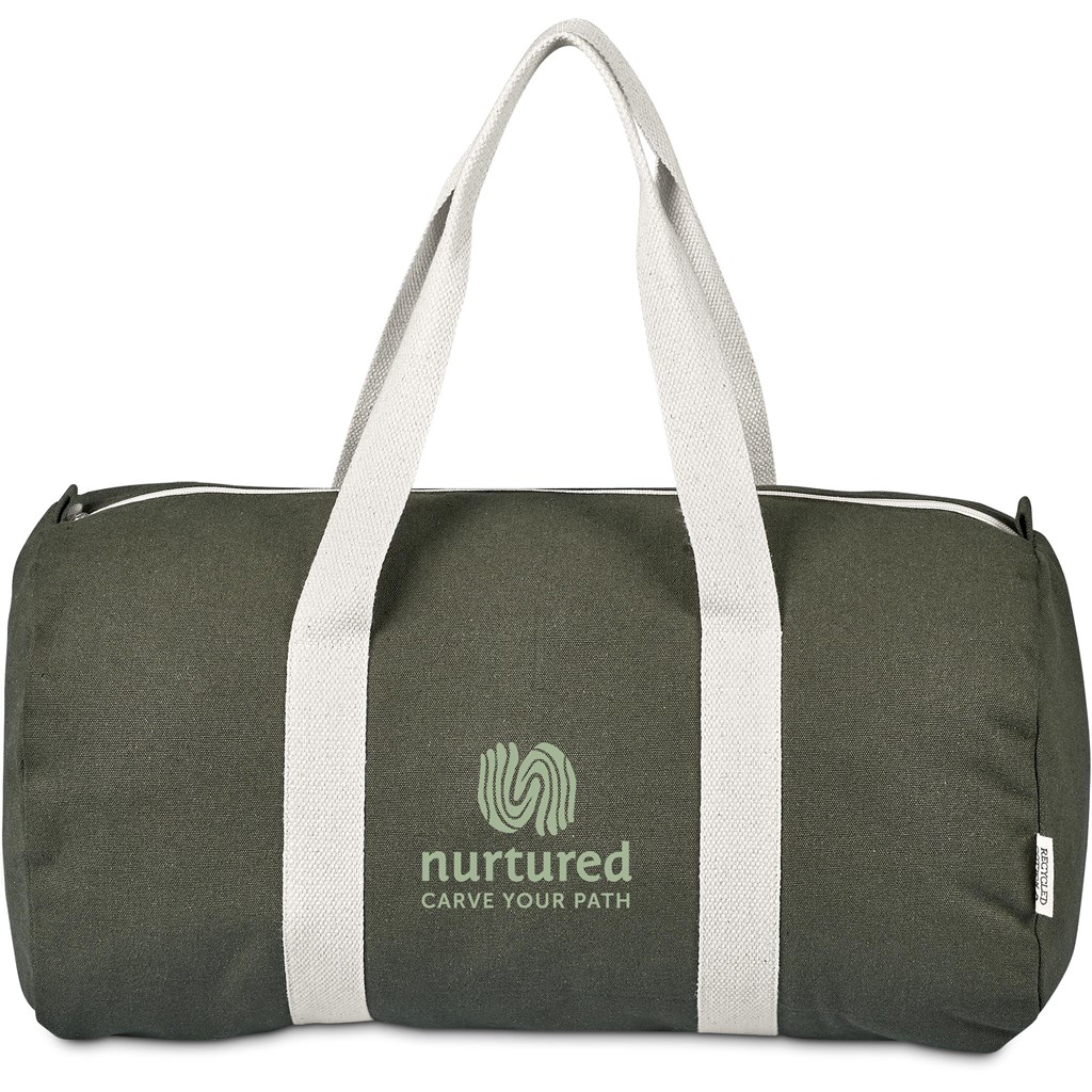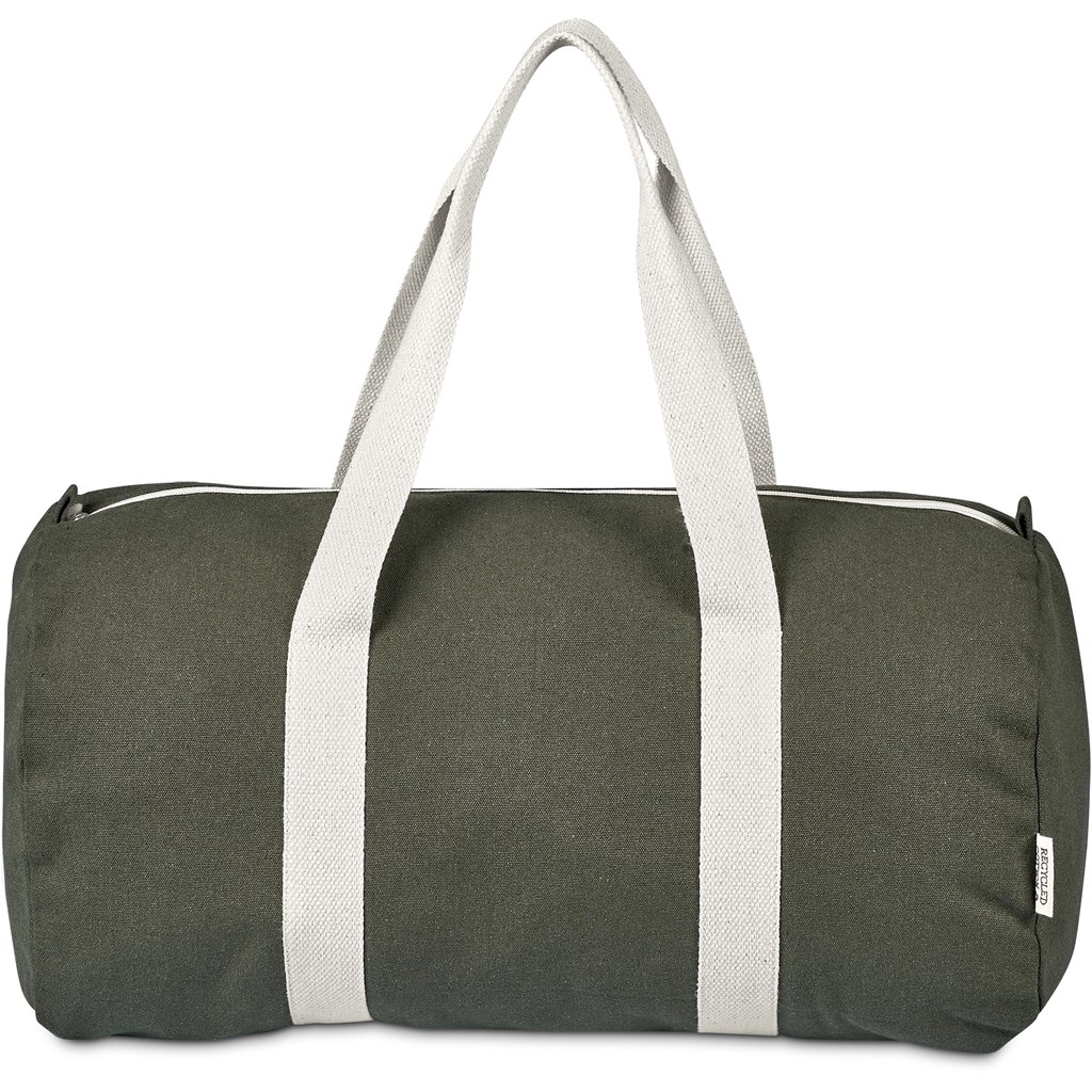 This bag is made from pre-consumer recycled cotton canvas. A mix of scraps, off-cuts and rejected textile articles is collected from textile factories and mills. It’s then recycled to produce the material, making it a more sustainable choice.
