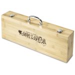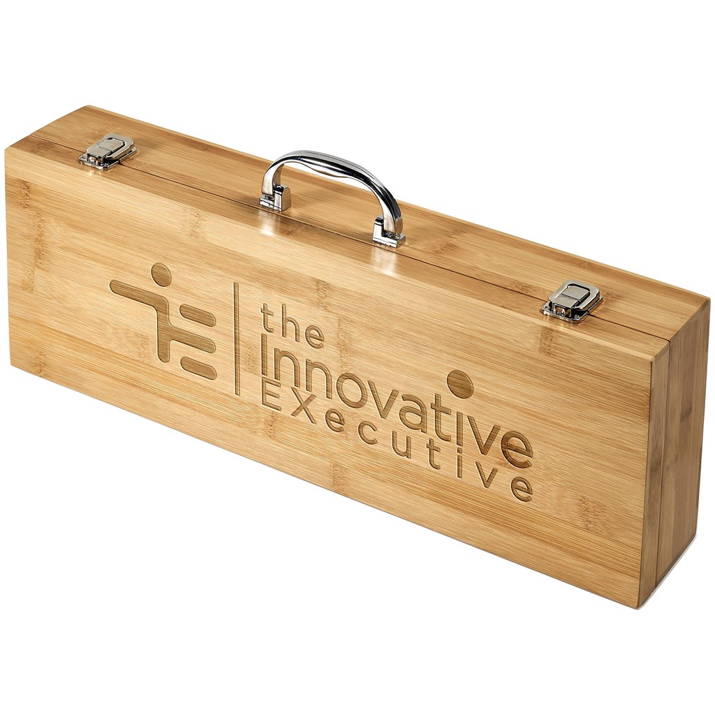 Executive gifting meets eco-conscious grilling with this superbly presented bamboo braai set.