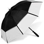A helpful necessity come rain or sunshine. This umbrella is large enough for more than one person. Vented canopy for wind resistance. Fibreglass shaft for durability. Comfortable foam handle. Get your logo out there with great branding space. 8 panels.