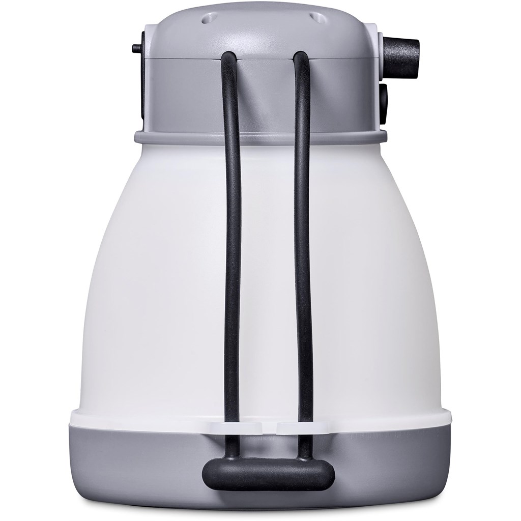 The rechargeable 3,600mAh battery in this multi-functional item powers the lantern and the flashlight, so you won’t need to buy batteries. It also functions as a power bank to charge your phone. The LED flashlight gives you a good option for targeted lighting, while the lantern provides ambient lighting. Use the adjustable silicone handle to carry the flashlight, or to hang up the lantern, but the lantern is also designed to stand comfortably on a level surface.